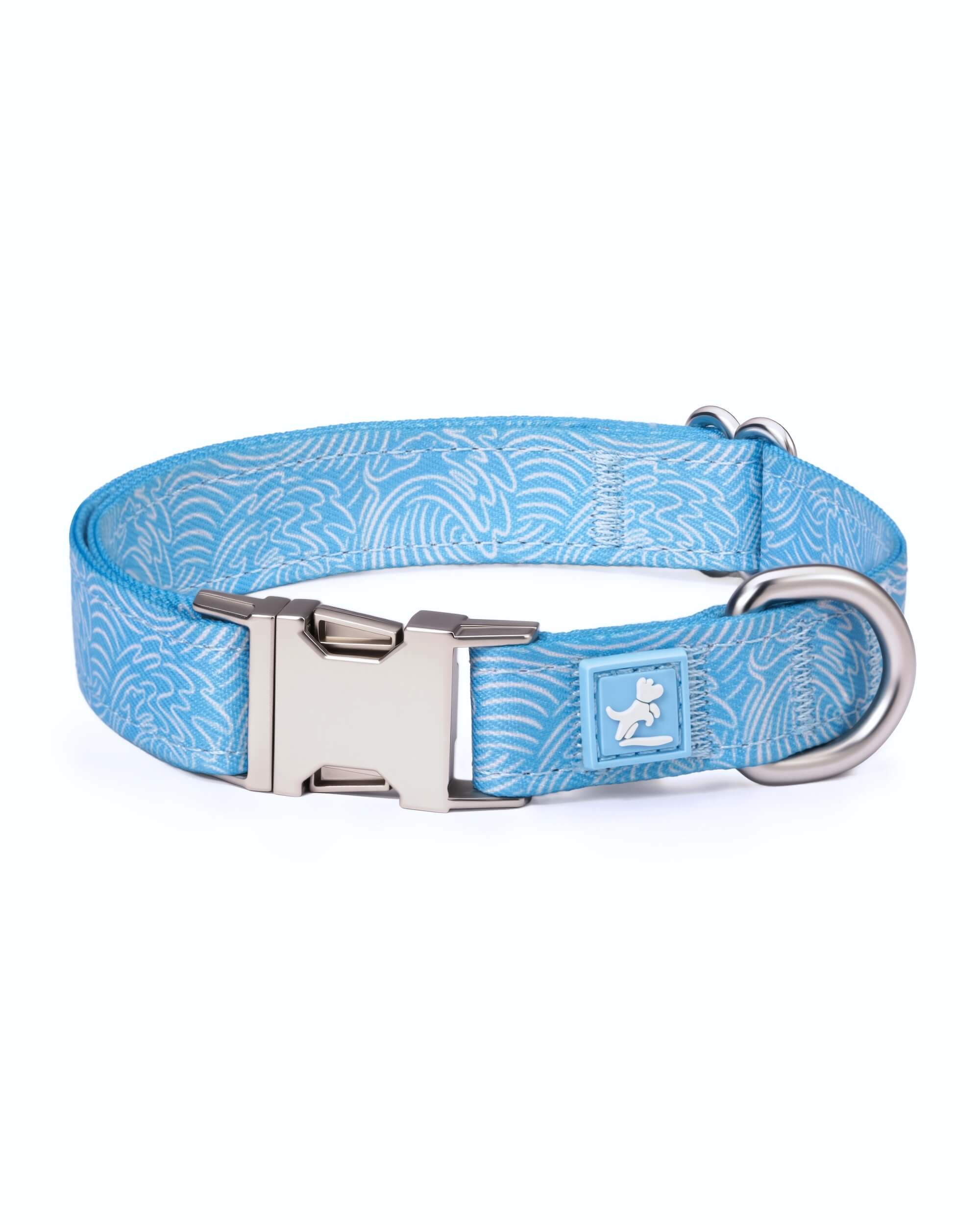 Add some ocean-cool to your pooch’s summer gear with this wave-inspired collar in Blue. The lightweight polyester-twill construction is soft on fur but strong enough for everyday wear. Reinforced Bar Tack stitching adds extra durability, while the rust-resistant zinc alloy buckle keeps things secure. Whether you’re heading to the beach or just chasing butterflies in the yard, this collar brings the chill.