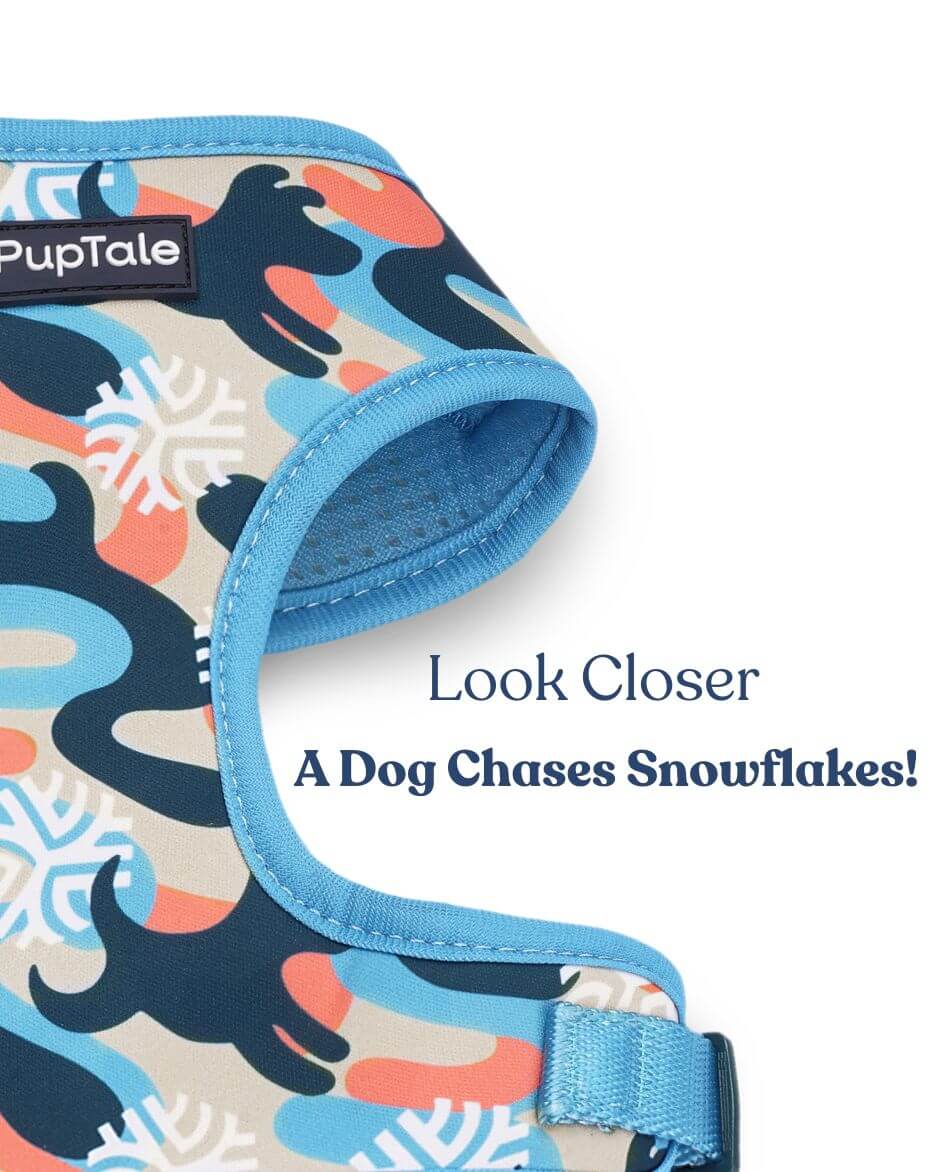 Dog Harness and Leash Set | Winter Snowflake Blue & Orange